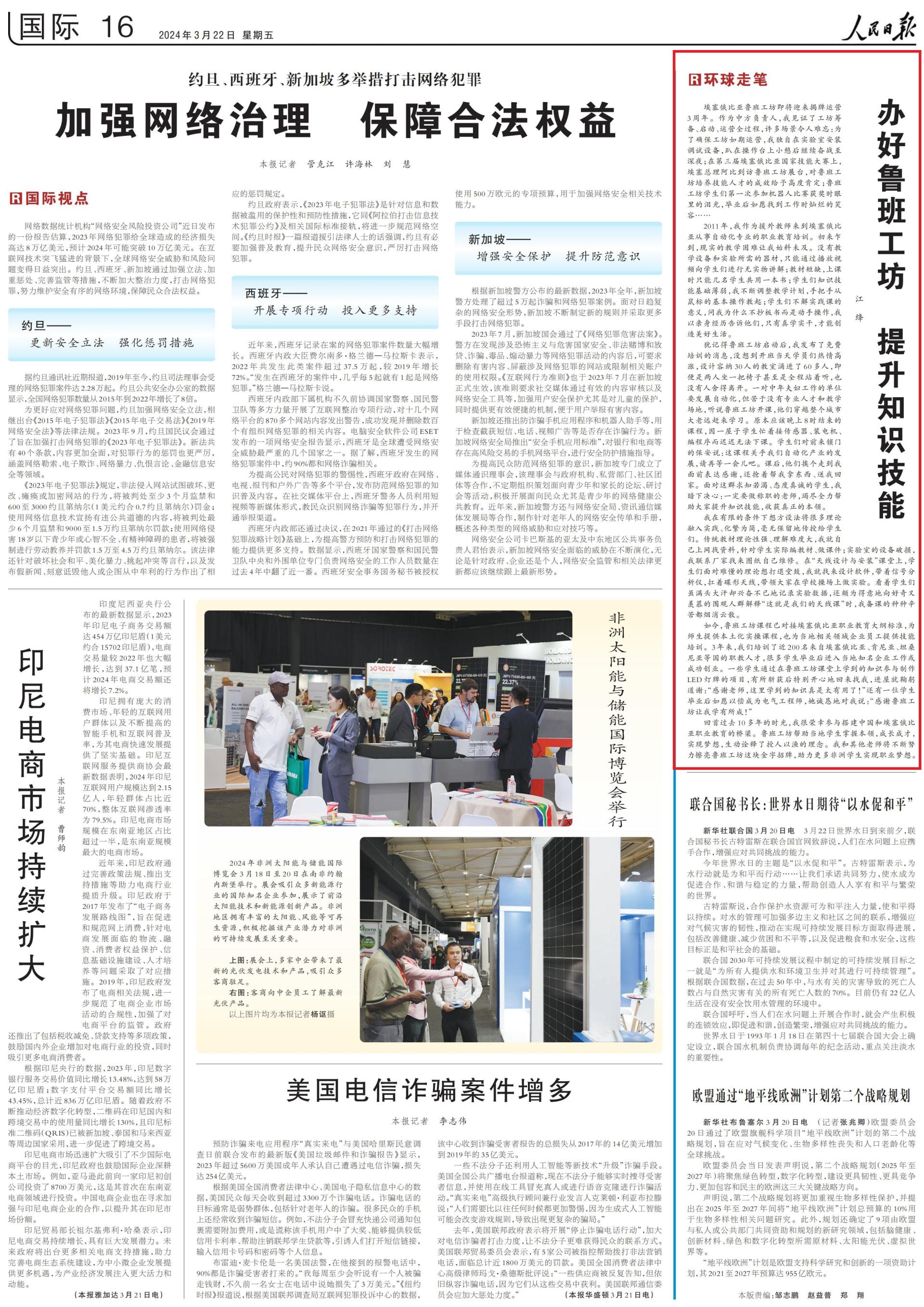 《人民日报》:办好鲁班工坊 提升知识技能